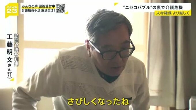 介護訪問を利用している工藤明文さん(71)は、元々2023年に閉鎖されたニセコの訪問介護事業所を利用していて、かつては週に3回サービスを利用できていましたが、今は週に1回になりました。