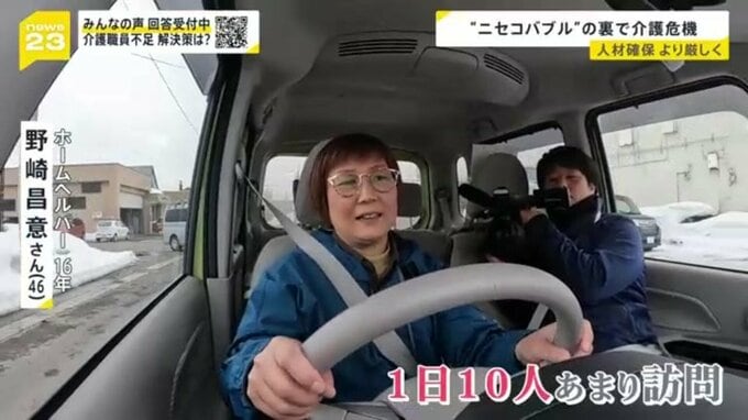 ニセコエリアにある訪問介護の事業所では、現在40~50代の4人のホームヘルパーが働いています。全国的に人手不足にあえぐ介護業界ですが、こちらの事業所でも人材確保に苦しんでいて10年間スタッフは全く変わっていません。