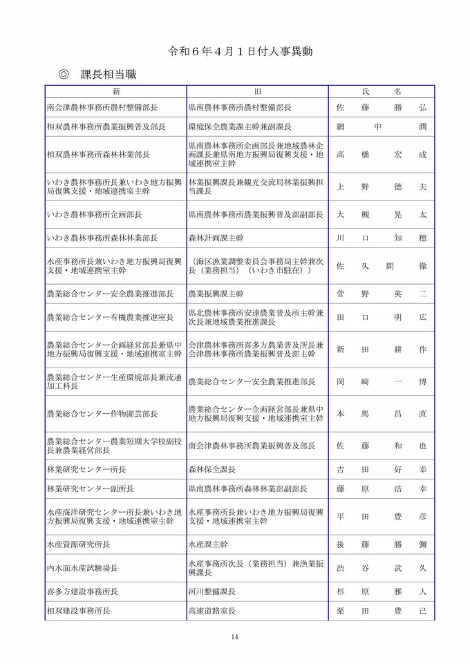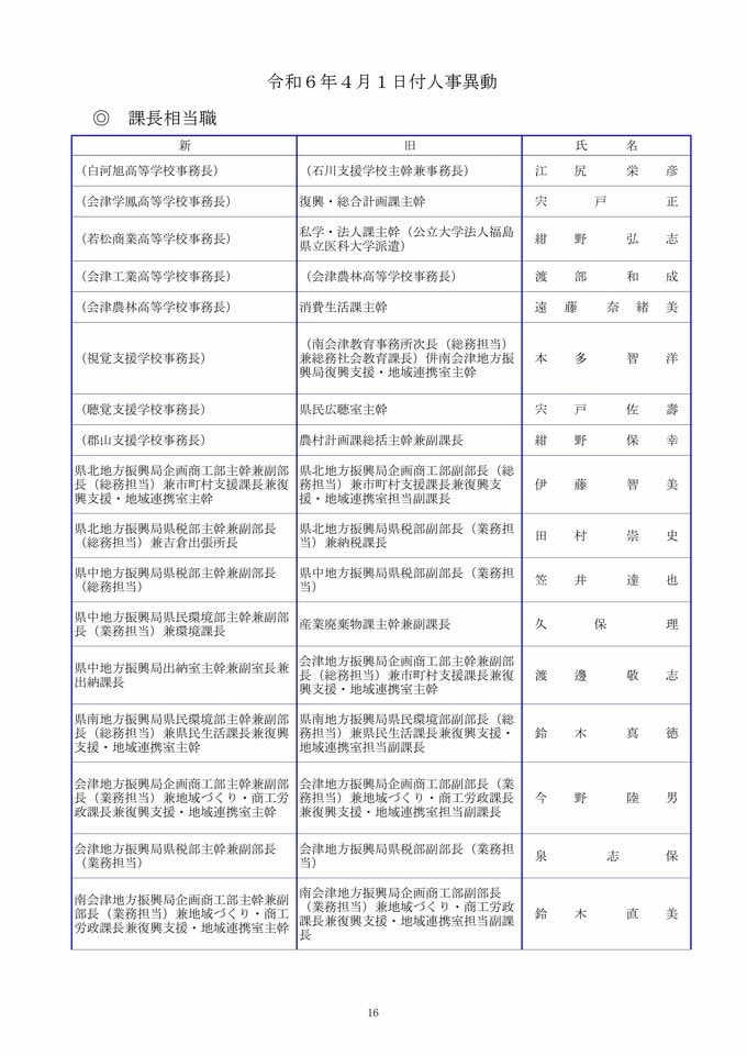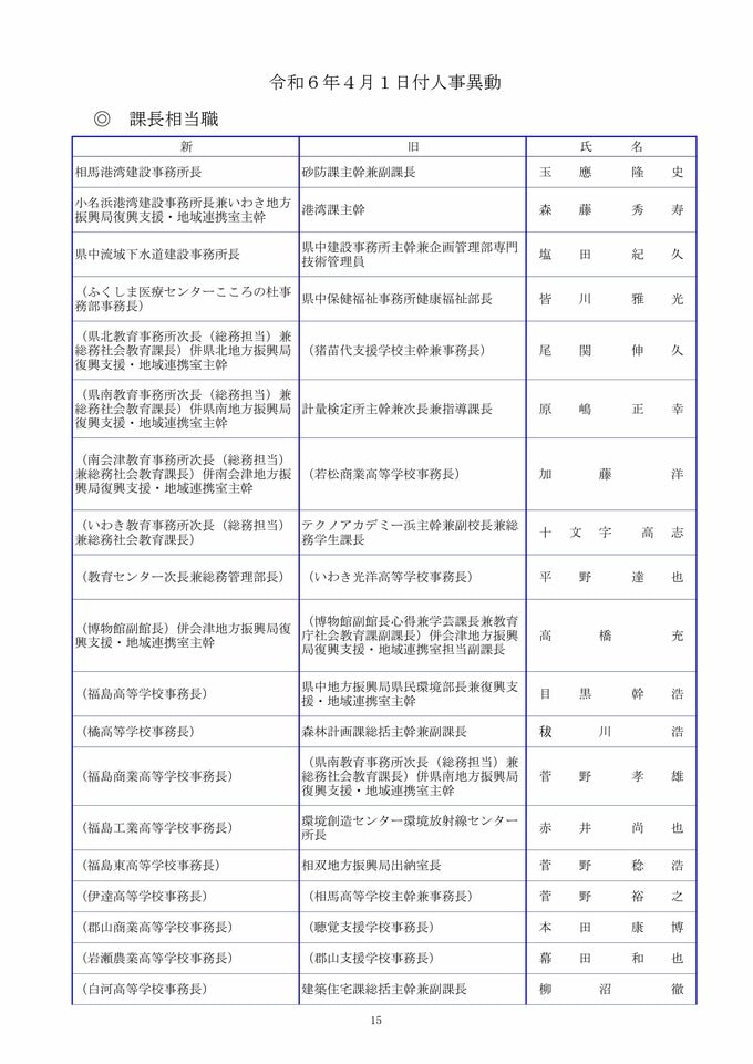 福島県職員人事異動2024年(令和6年春)課長相当職以上の職員の異動・退職者【名簿全掲載】