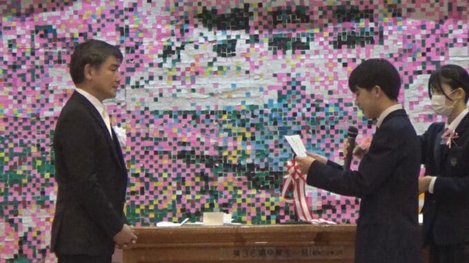 思いが込められた感謝状を受け取り、平良校長は改めて卒業生にエールを送りました。