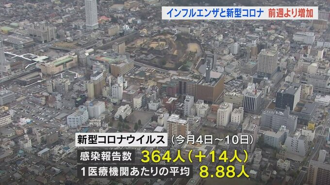 また新型コロナウイルスの感染報告数は364人で前の週より14人増加し1医療機関当たりの平均は8.88人でした。