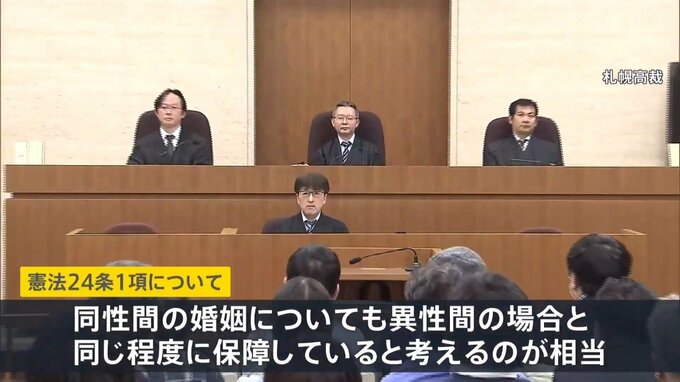 同性カップルが国を訴えた裁判。札幌高裁は「婚姻の自由は異性間と同様同程度に保障すべき」だとして全国の高裁では初の「違憲」の判断を示しました。