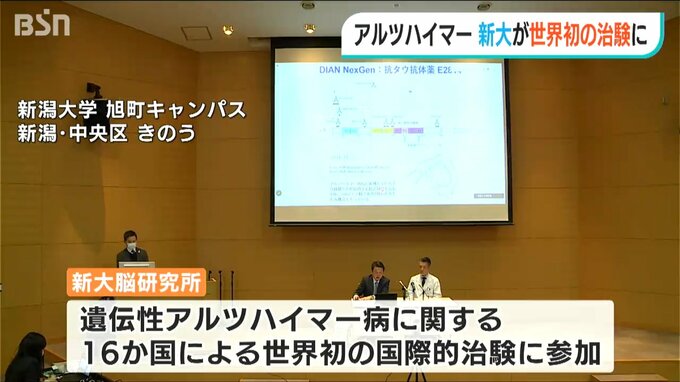 新潟大学 脳研究所が参加しているのは遺伝性アルツハイマ―病に関して16か国の研究機関などが行っている世界で初めての治験です。