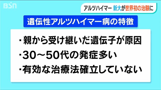 現在、有効な治療法がない遺伝性のアルツハイマー病の治療に向け2種類の薬を併用する世界で初めての治験に新潟大学が参加しています。