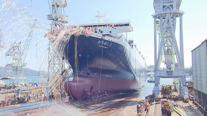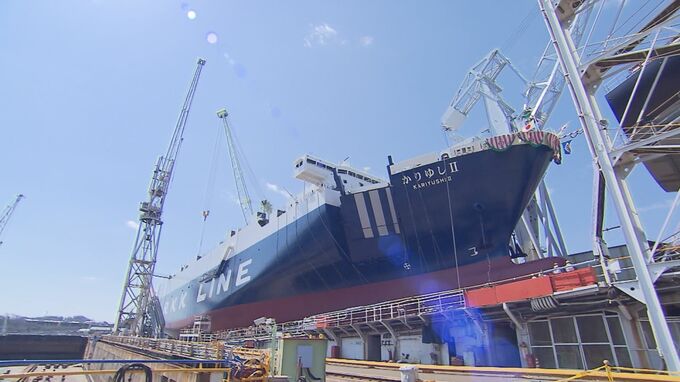 沖縄と九州の海上物流を支える琉球海運の新しい貨物船「かりゆしII」の進水式が広島県で行われました。