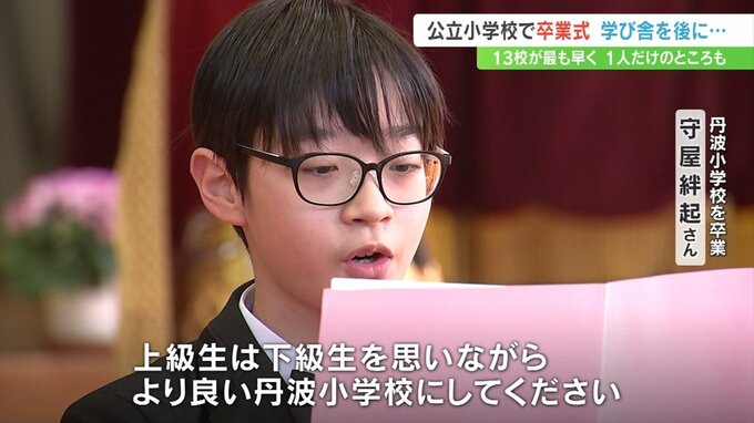県内では15日、公立小学校13校で最も早い卒業式が行われました。
