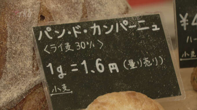RKB川内信江「いろんな種類のパンがありますね。量り売りは……ありました。こちら、1グラム1.6円です」