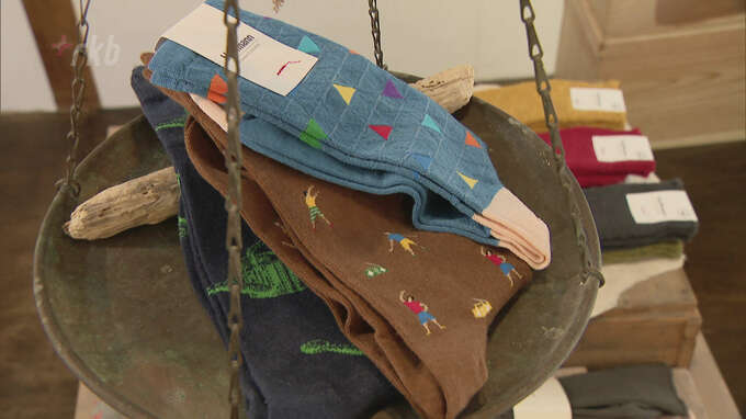 この店では元々「もったいない」をテーマに、靴下を片方ずつ販売したり、靴下を作る時に出る端切れで作った鍋敷きなどを店頭に置いていました。ある時、お客さんから糸を分けてほしいという声があり、余った糸の量り売りを始めたところ、好評だということです。