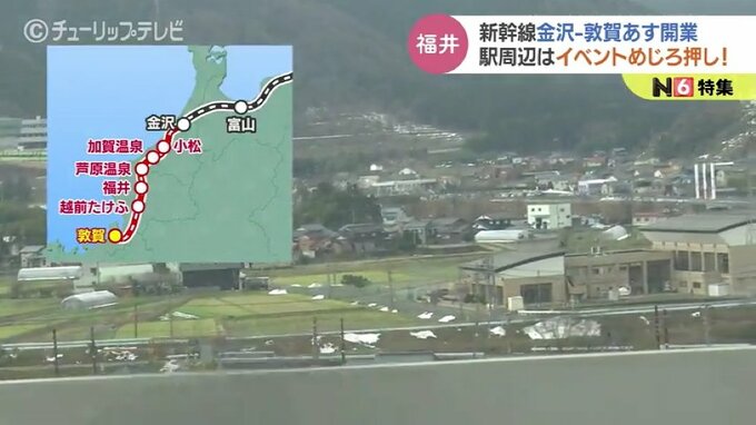嘉藤奈緒子アナウンサー:「こちら敦賀駅でも新幹線開業に合わせて様々なイベントが企画されています!」
