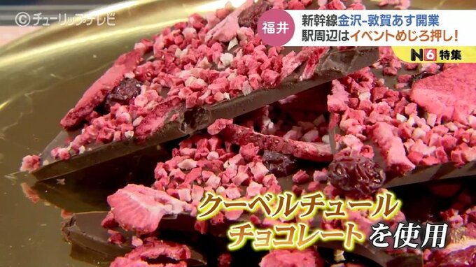 福井の住民に愛されるチョコレート専門店。新幹線開業に合わせて2月3日、直営店がオープンしました。併設された工場で製造し、カカオ分が多いクーベルチュールチョコレートを使っています。