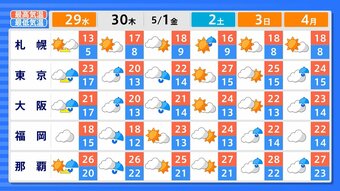 【週間天気予報】GWの天気はどうなる?5月1日にかけて天気ぐずつく見込み…西日本・沖縄・奄美では警報級の大雨の可能性も【5月2日(土)にかけての雨風シミュレーション】