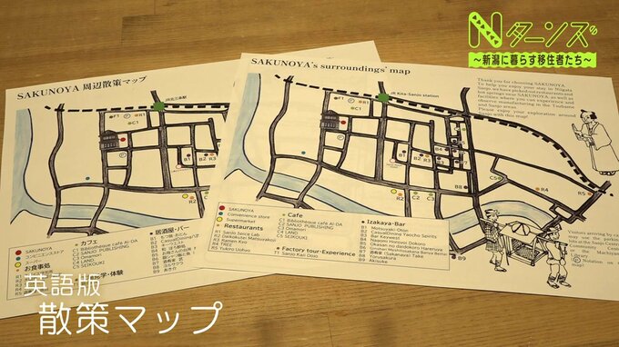 もっと地域を盛り上げたいと、オーナーの今井さんと一緒に作ったのが英語版の散策マップ。交流を楽しむアイデアが次々と生まれているそうです。