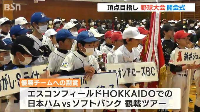 プロ野球の観戦ツアーをかけた少年野球大会の開会式が17日、上越市で行われました。