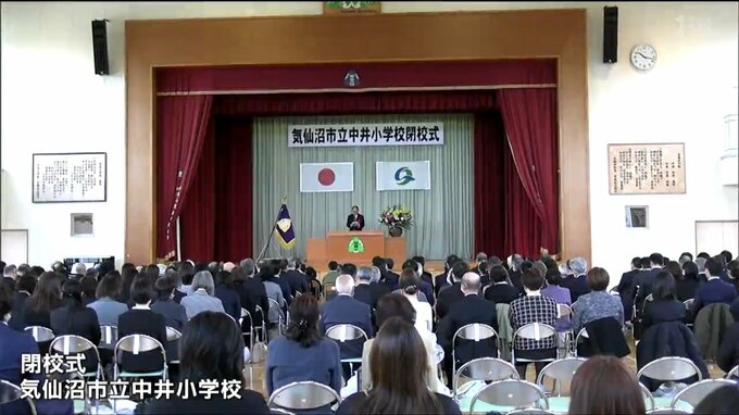 気仙沼市立中井小学校で閉校式が行われ74年の歴史に幕を下ろしました。閉校式には、地域住民や児童らおよそ300人が出席し多くの児童で賑わった昔の様子が上映されました。また、在校生全員で感謝の言葉を述べて校…
