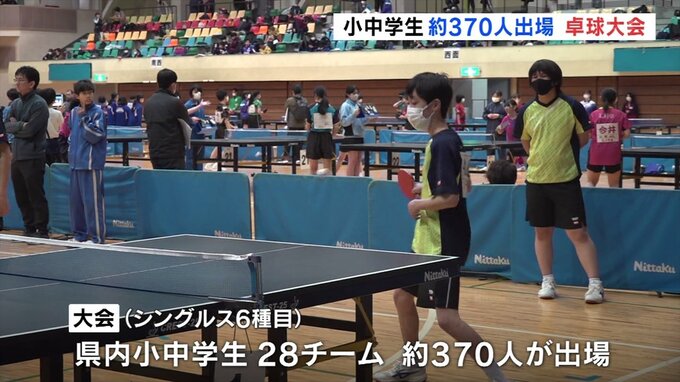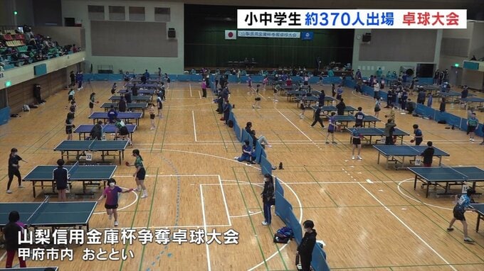 山梨県内の小中学生が出場する卓球大会が16日、甲府市で行われました。