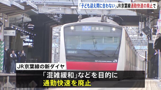 おとといのダイヤ改正で通勤快速が廃止されたJR京葉線では、新しいダイヤになってから初めて平日を迎え、通勤客からは「生活サイクルを変えた」という声も聞かれました。記者「ダイヤ改正を受け、元々通勤快速だっ…