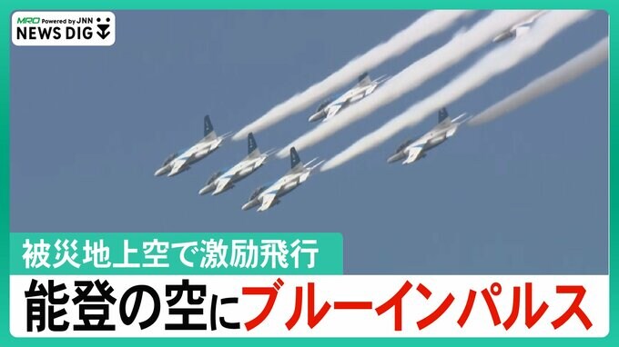 航空自衛隊のアクロバット飛行チーム「ブルーインパルス」が18日、能登半島地震の被災地上空で激励飛行を行いました。能登地方の各地では被災者らが空を見上げ、青と白の機体が上空を通過すると歓声を上げていまし…