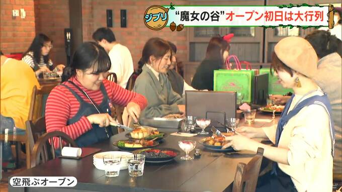 また、ジブリパーク初となるレストランでは、開店直後から列が…キッシュやパイ、スイーツなど皆さんジブリ作品ゆかりのメニューを味わっていました。