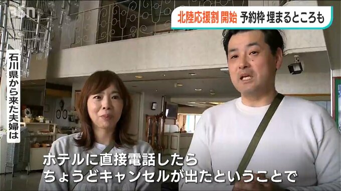 【石川県から来た夫婦は】「30秒くらいで埋まった。ホテルに直接電話したらキャンセル出てとれた」