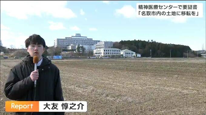 名取市の住民でつくる団体が18日、県立精神医療センターを富谷市ではなく、名取市の県立がんセンター西側に移転するよう求める要望書を県に提出しました。要望書では移転先を名取市の県立がんセンターの西側の山林およそ6万平方メートルの土地に変更すべきとしています。