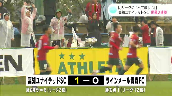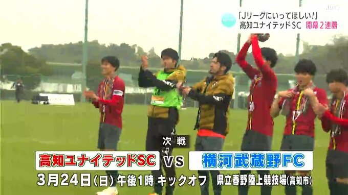 高知からJリーグ入りを目指すサッカーチーム「高知ユナイテッドSC」が、JFLで開幕2連勝を果たし、Jリーグ入りに1歩近づきました。