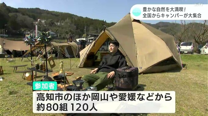 イベントには、高知市のほか、岡山や愛媛など県内外から集まったおよそ80組、120人のキャンパーが参加し、それぞれが持ち寄った自慢のキャンプグッズで交流します。