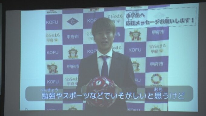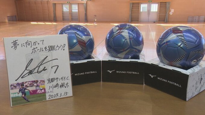 甲府市出身でJ1京都サンガFCに所属する川﨑颯太選手が市内の小学校に送ったものです。