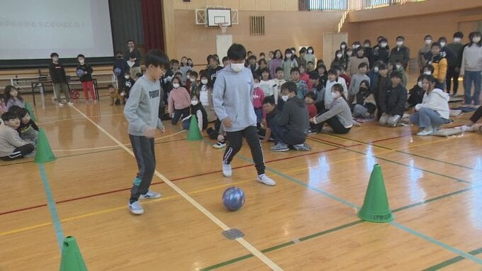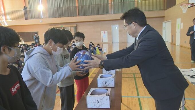甲府市出身のJリーガー川﨑颯太選手から市内の小学校にサッカーボールが贈られました。