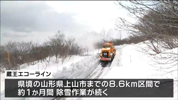 蔵王エコーラインでは、県境の山形県上山市までの8.6キロの区間を対象におよそ1ヶ月間除雪作業が続きます。