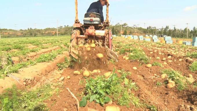 国頭村安波のジャガイモ畑では農家が収穫作業に大忙しとなっていて、上原盛洋さんの畑では、1月から始まった収穫が4月いっぱいまで続き、ことしは180トンの収穫出荷を見込んでいるということです。