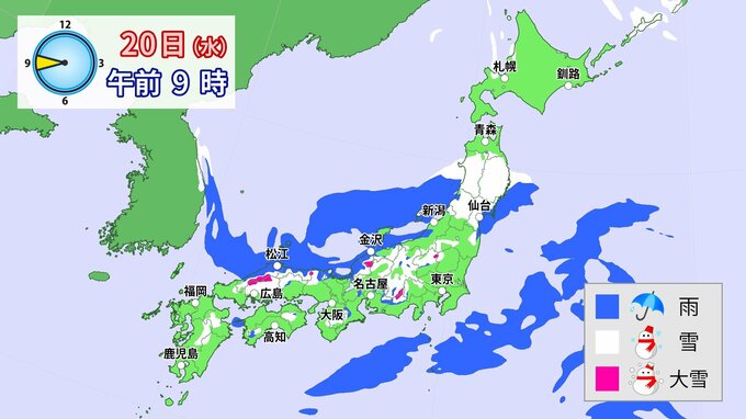 今後の雪のシミュレーション(20日午後9時~)