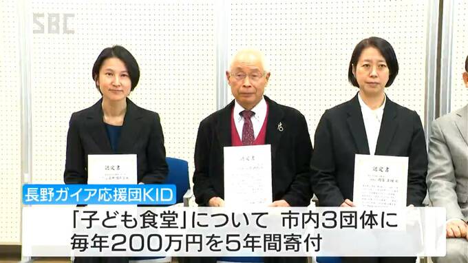 長野市内で子ども食堂を運営する3つの団体に、今後5年間、毎年200万円の支援金が贈られることになりました。寄付をするのは、2023年4月に発足した「長野ガイア応援団KID(キッド)」で、長野青年会議所のOBなど、…