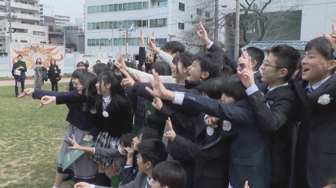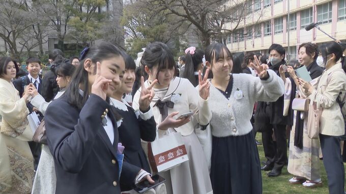 ことしは卒業生のほとんどがマスクをつけずに式に参加しました。