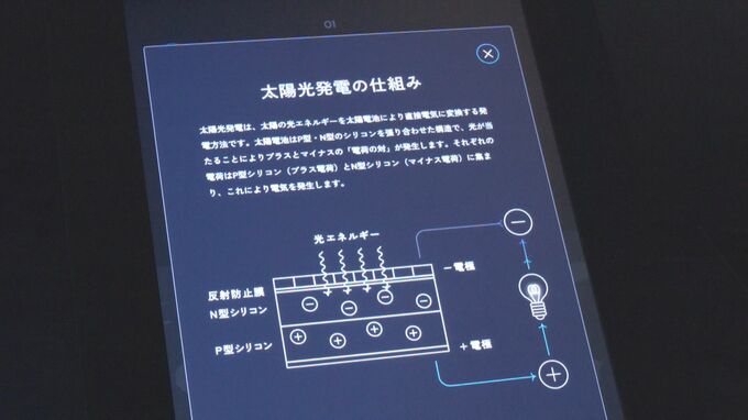 この施設では、発電会社のJERAが行っている風力発電や太陽光発電の仕組みを紹介するほか、3月末から実施予定の燃やしても二酸化炭素が出ない「アンモニア」を石炭に混ぜて燃料にする実証実験を大型モニターと碧南火力発電所の模型で説明するなど、発電の最先端技術に触れることができます。