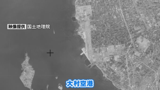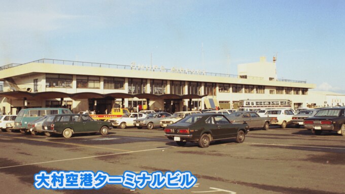 1975年に撮影された写真です。当時、長崎県の空の玄関口だったのが、陸側にあった「大村空港」です。今では防衛省に移管され、主に海上自衛隊の飛行場として使われています。