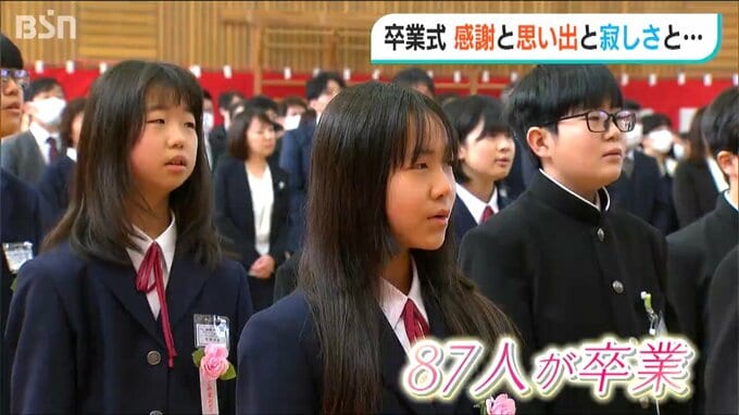 新潟市内の一部の小学校で19日に卒業式が行われ、卒業生はお世話になった先生や親に感謝を伝え、学び舎を後にしました。新潟市西区の新通つばさ小学校です。87人が卒業の日を迎えました。1人1人名前を呼ばれると、…