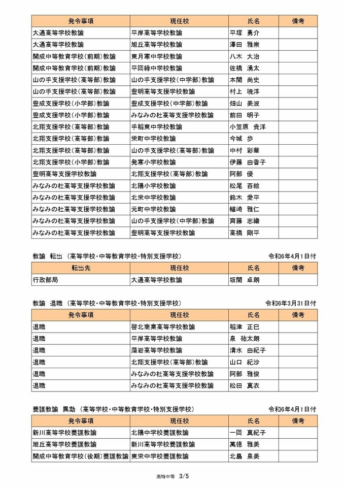 なお、札幌市立を含むその他の公立小・中学校、義務教育学校などの人事異動について、24日と25日に発表されます。