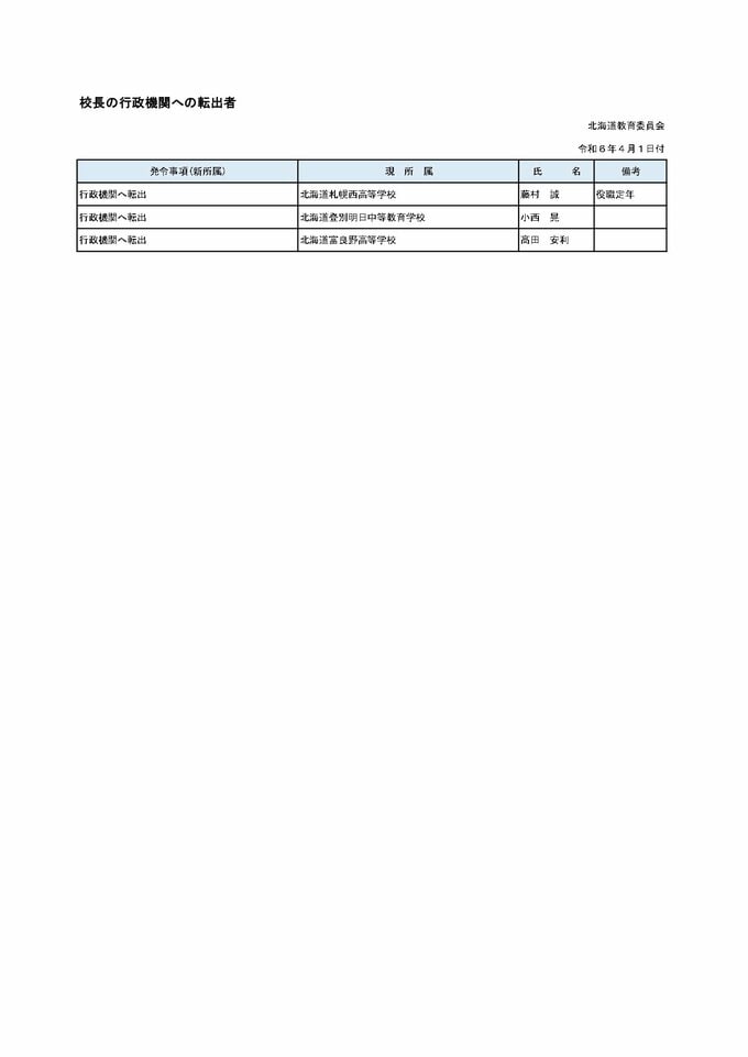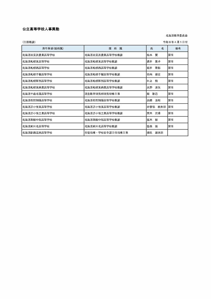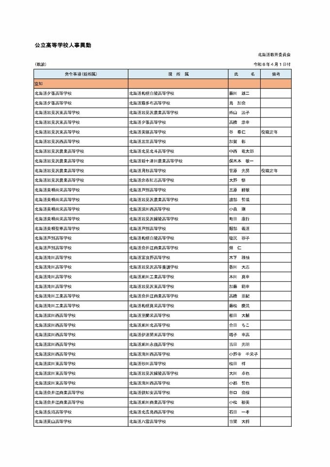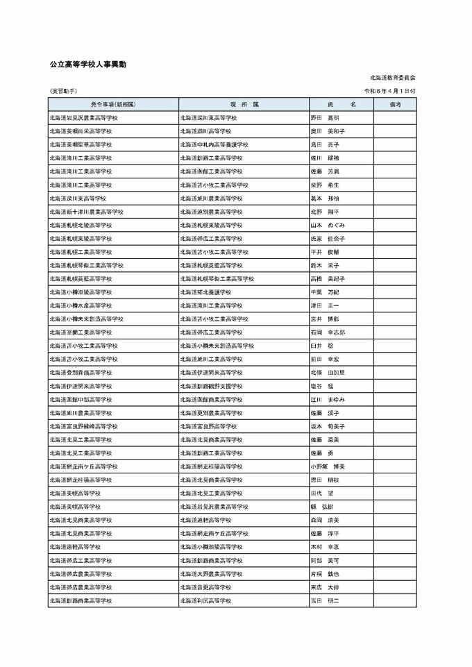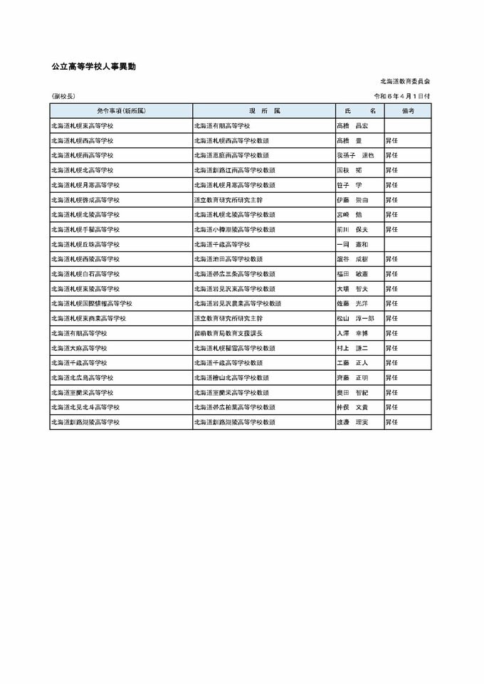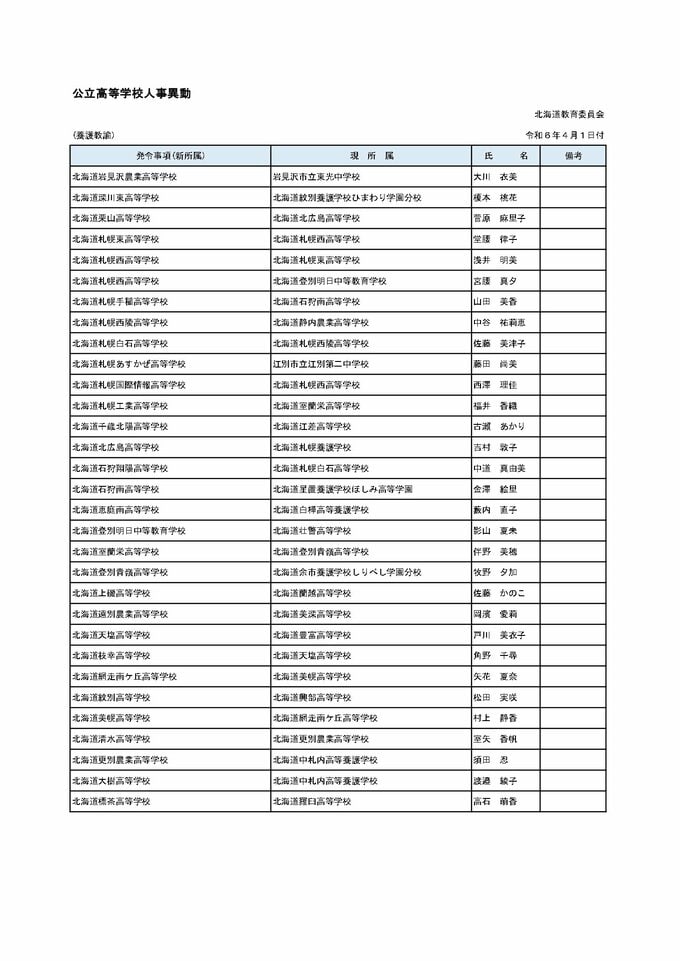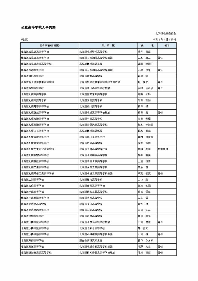 北海道教職員 人事異動2024「あの先生はどこへ?」~小中学校・高校・特別支援学校など人事異動全名簿(23日発表分) 北海道放送 2024年3月23日(土) 00:00 国内 【公立高校 異動(校長・副校長・教頭・主幹教諭・教諭・養護教諭・実習助手)】