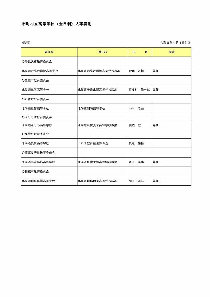 北海道教職員 人事異動2024「あの先生はどこへ?」~小中学校・高校・特別支援学校など人事異動全名簿(23日発表分) 北海道放送 2024年3月23日(土) 00:00 国内 【市町村立高校 異動(校長・教頭・教諭・養護教諭)】