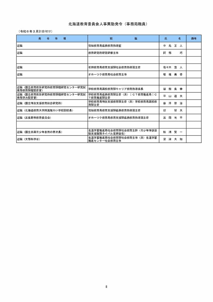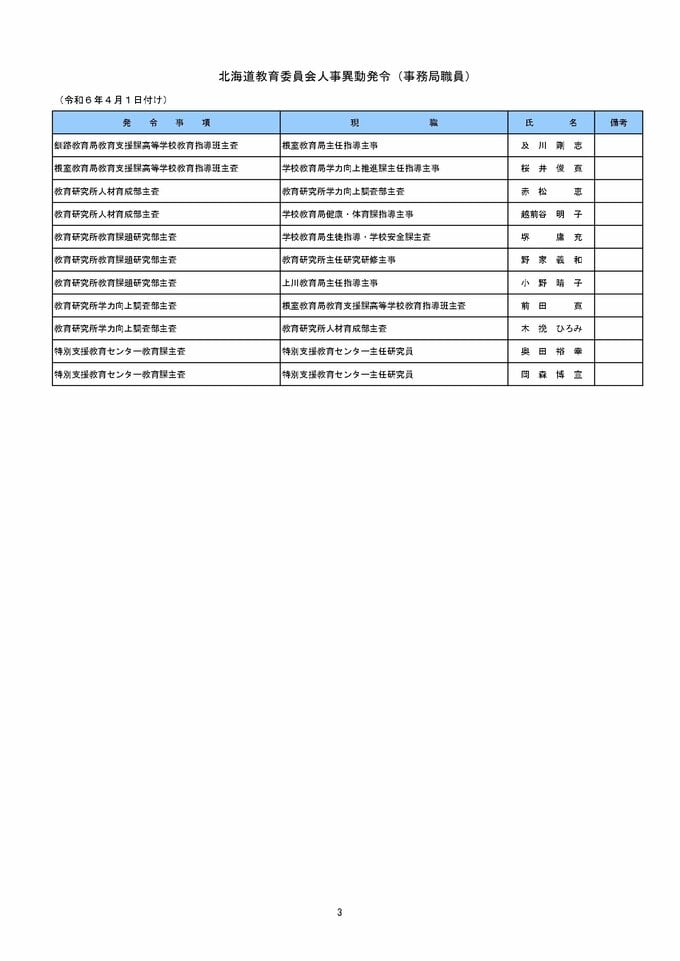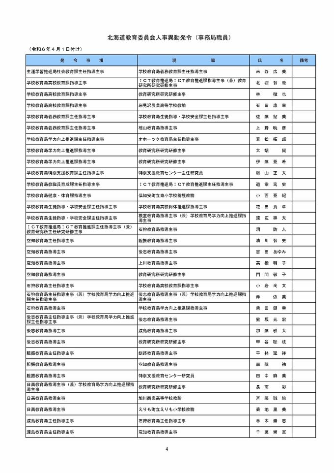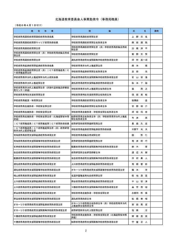 北海道教職員 人事異動2024「あの先生はどこへ?」~小中学校・高校・特別支援学校など人事異動全名簿(23日発表分)