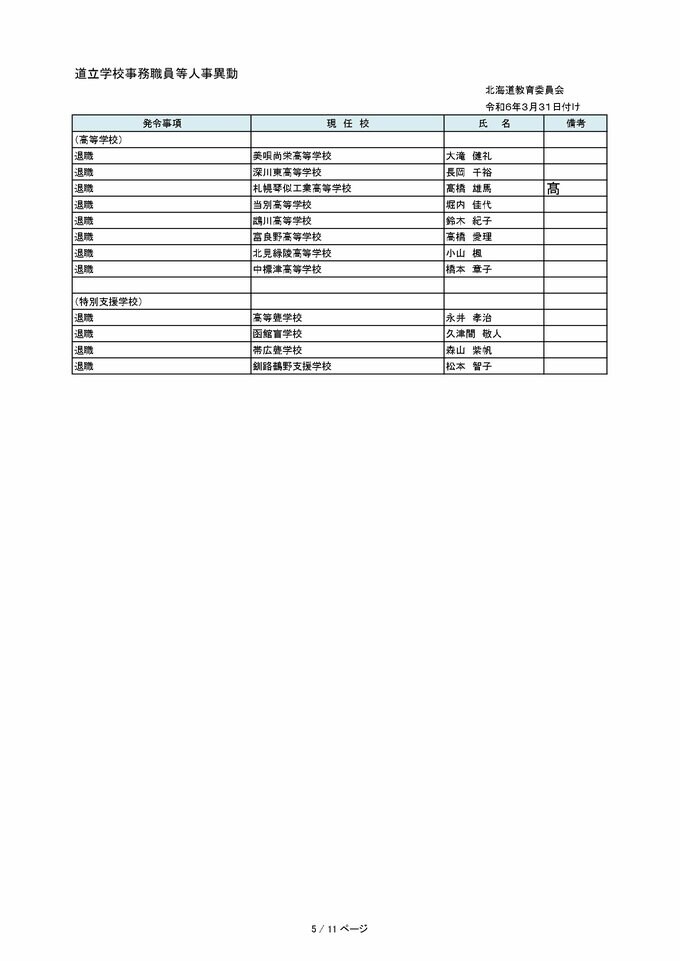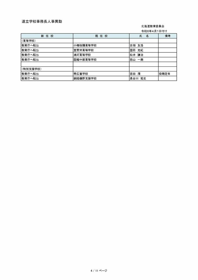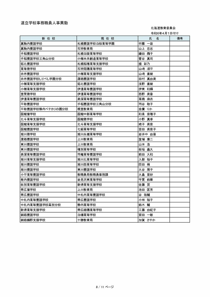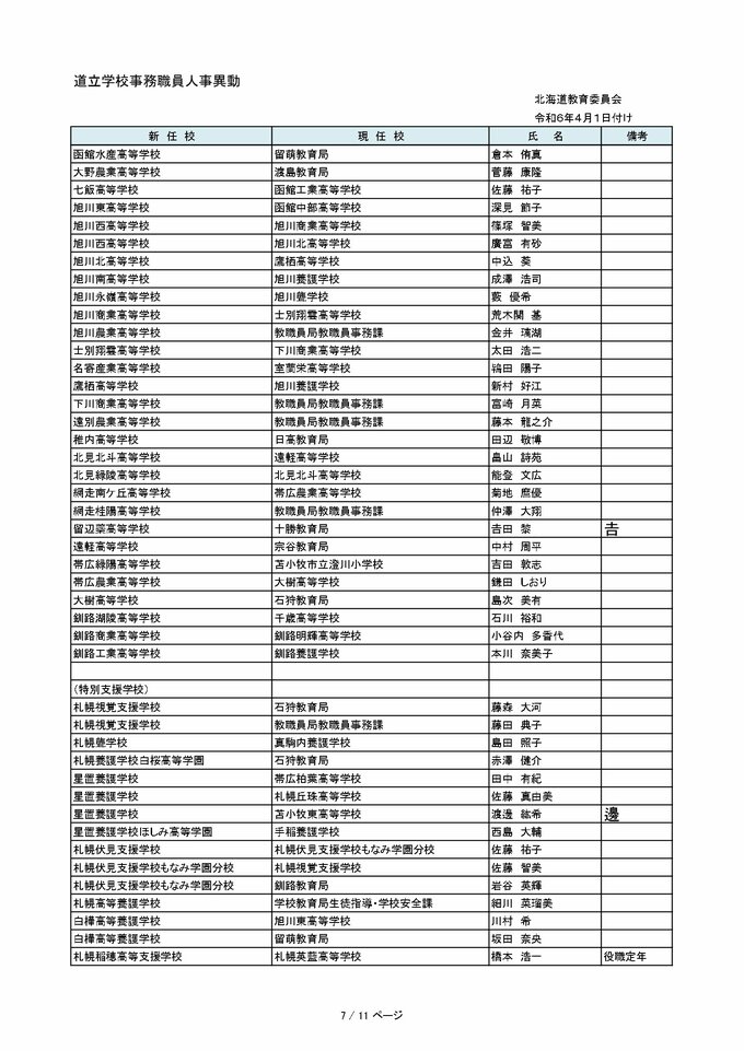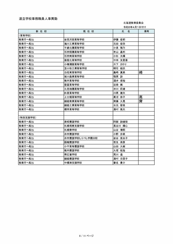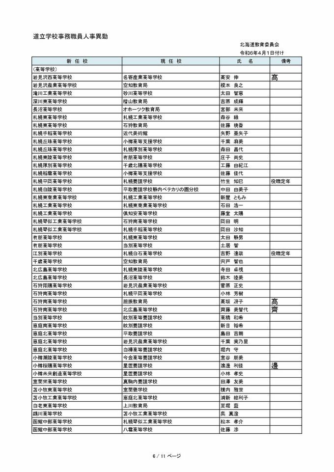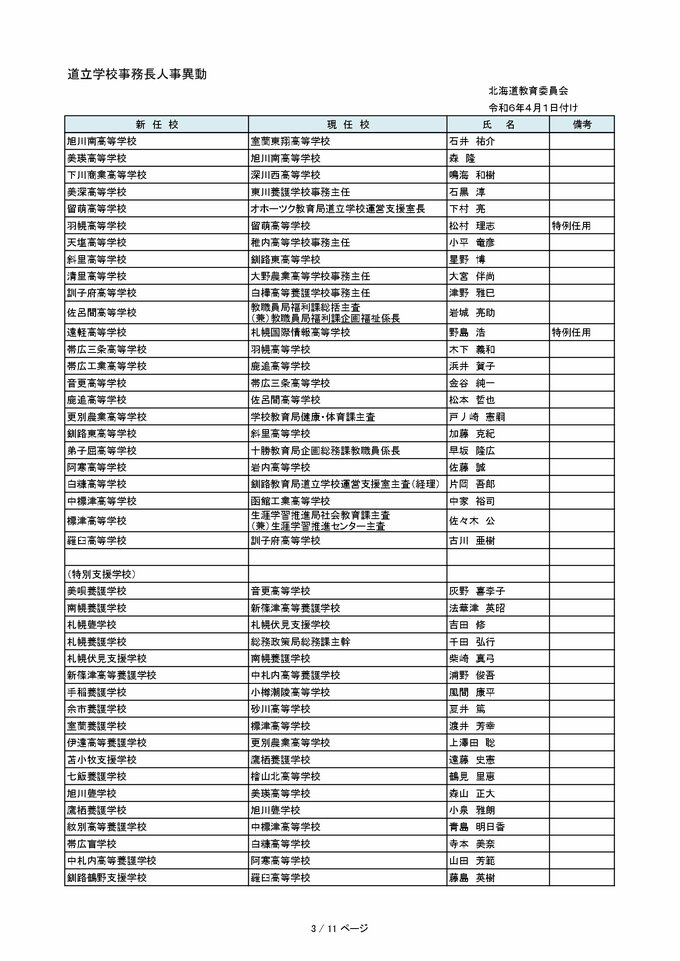 北海道教職員 人事異動2024「あの先生はどこへ?」~小中学校・高校・特別支援学校など人事異動全名簿(23日発表分) 北海道放送 2024年3月23日(土) 00:00 国内 【道立学校事務長・事務職員など】