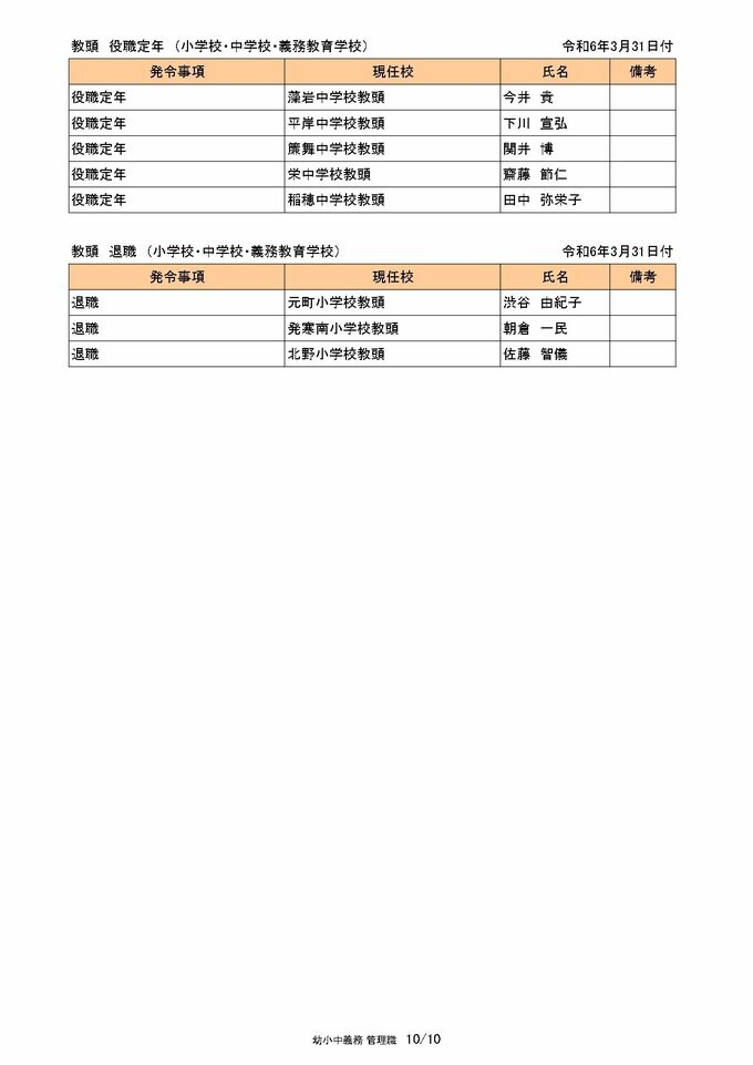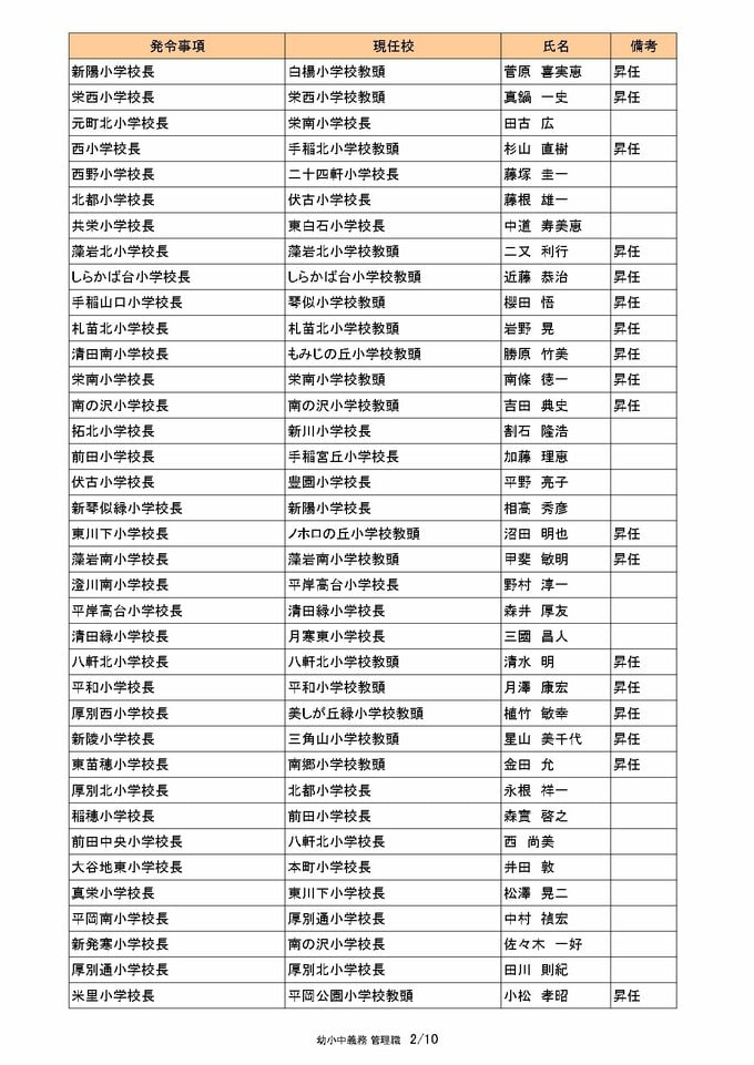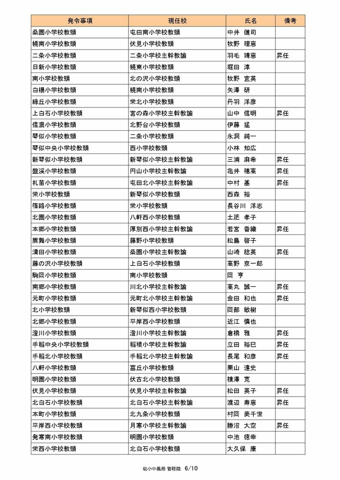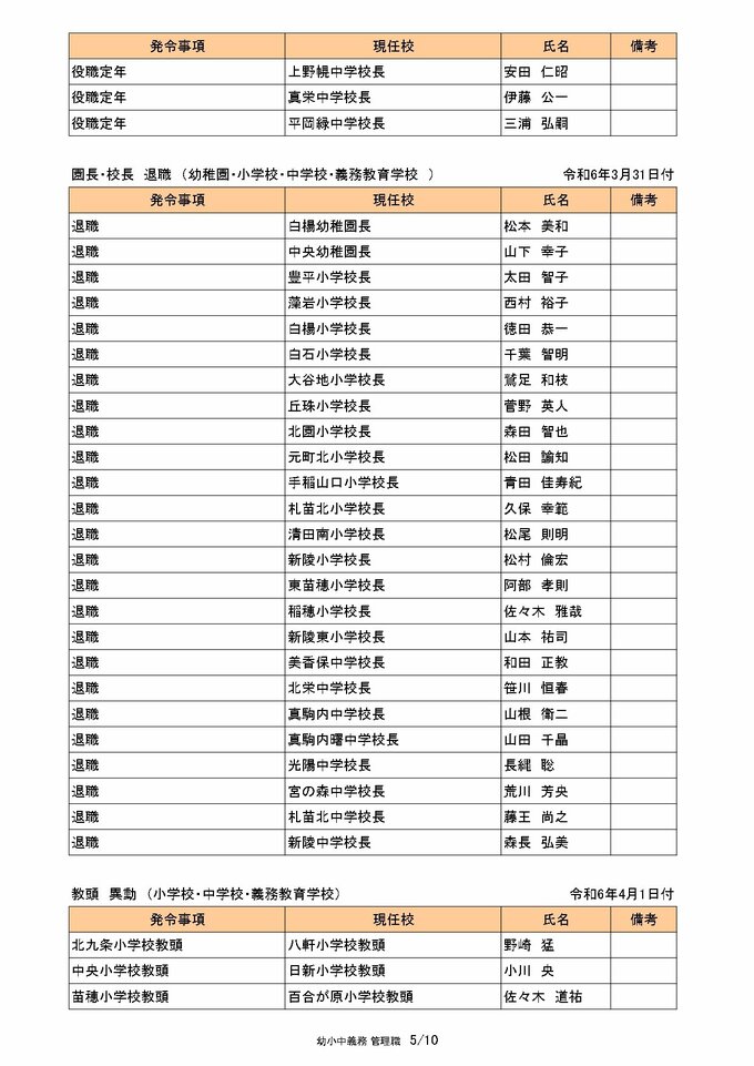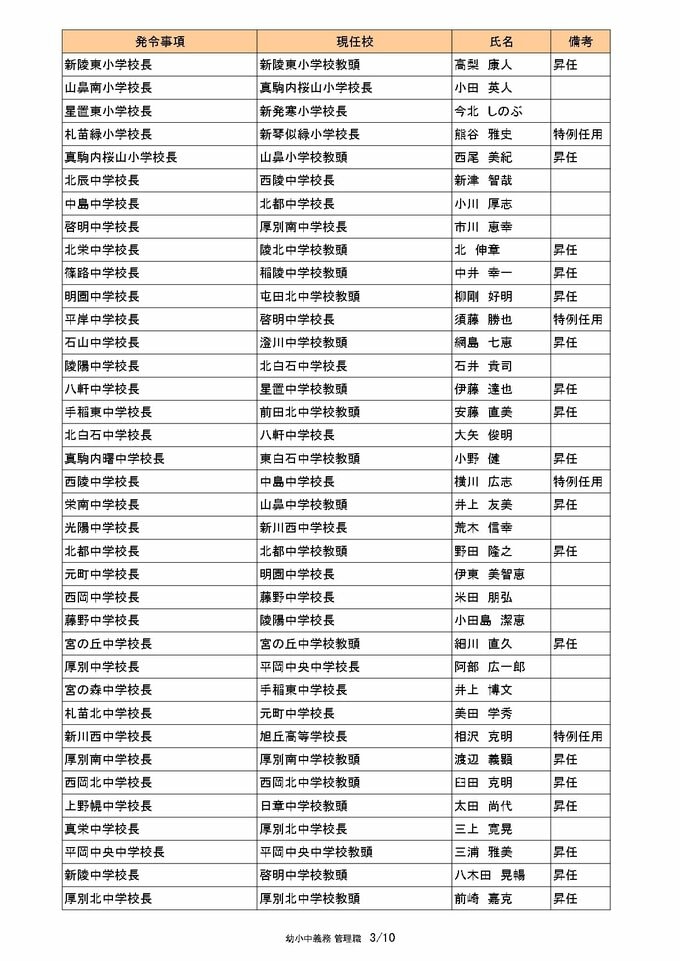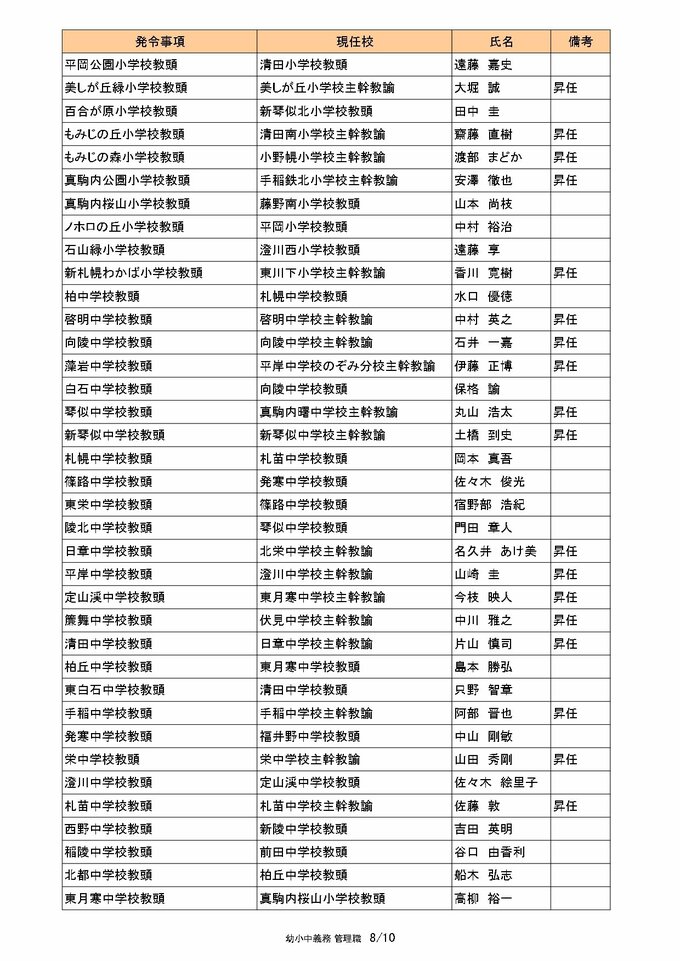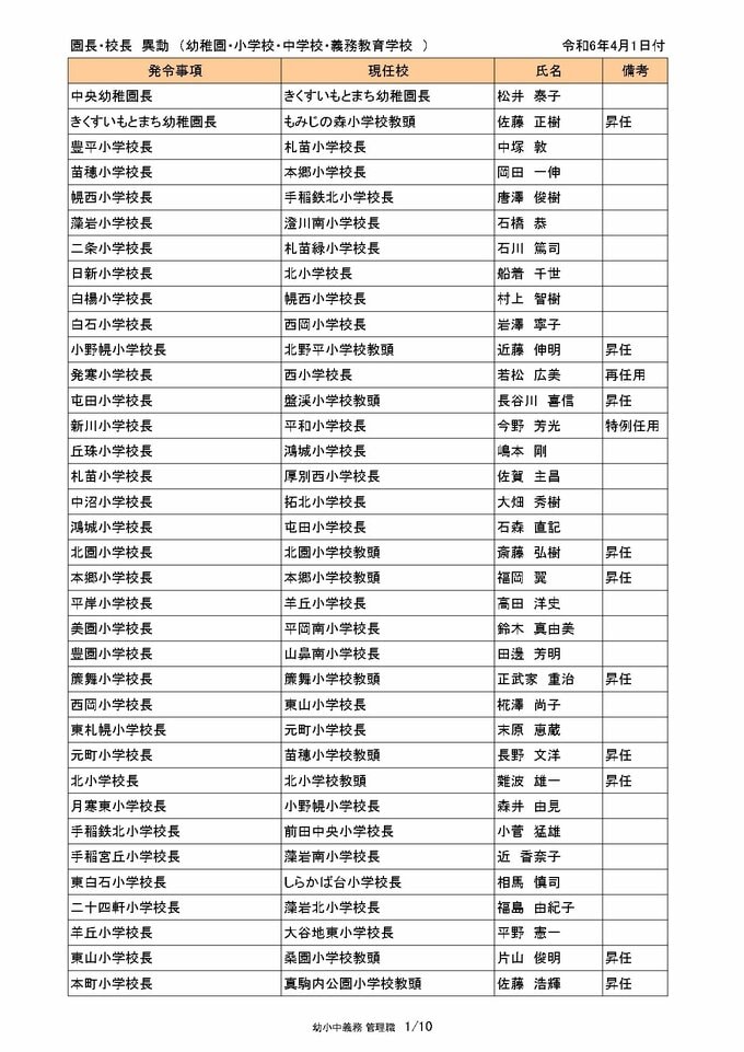 北海道教育委員会は24日、4月1日付の道内公立小・中学の校長、教頭の人事異動を発表しました。(退職は3月31日付)