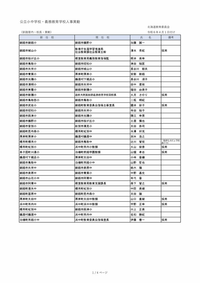 北海道教職員 人事異動2024「あの先生はどこへ?」~小・中学校の校長、教頭など人事異動全名簿(24日発表分) 北海道放送 2024年3月24日(日) 00:00 国内 釧路管内 公立小中学校・義務教育学校(校長・教頭) 根室管内 公立小中学校・義務教育学校(校長・教頭)