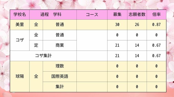 【全校掲載】沖縄県県立高校入試2024 第2次募集最終志願倍率 普天間や那覇西など初回から倍率変動