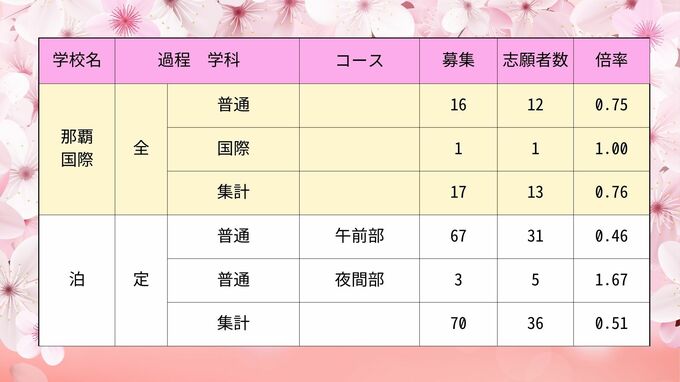 【全校掲載】沖縄県県立高校入試2024 第2次募集最終志願倍率 普天間や那覇西など初回から倍率変動