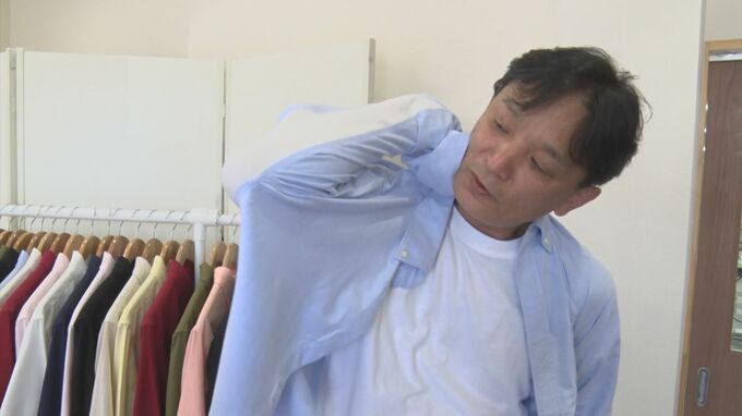 「『スルースリーブ』っていうシャツになっています。腕に麻痺のある人でも着やすいシャツ、片手で簡単に着られるシャツになっています」