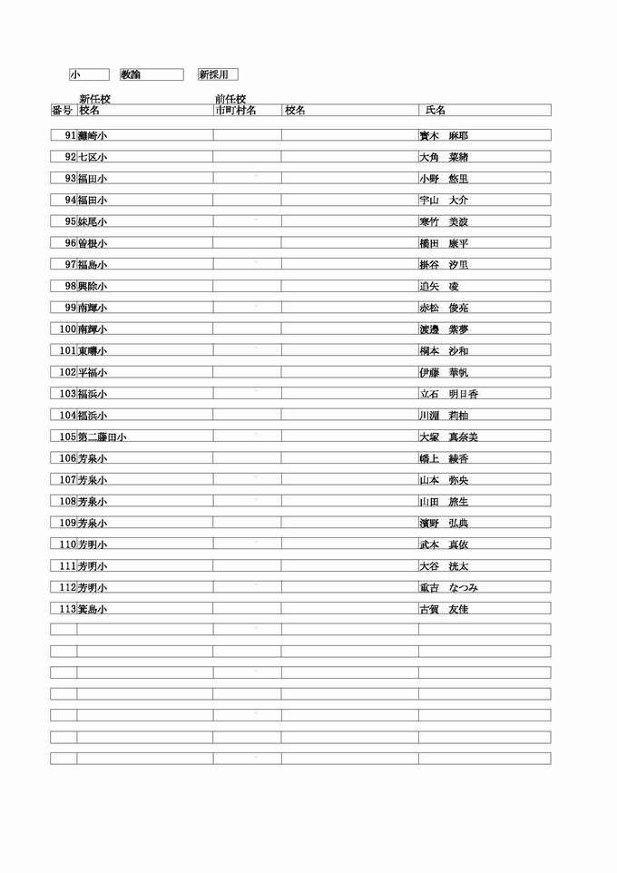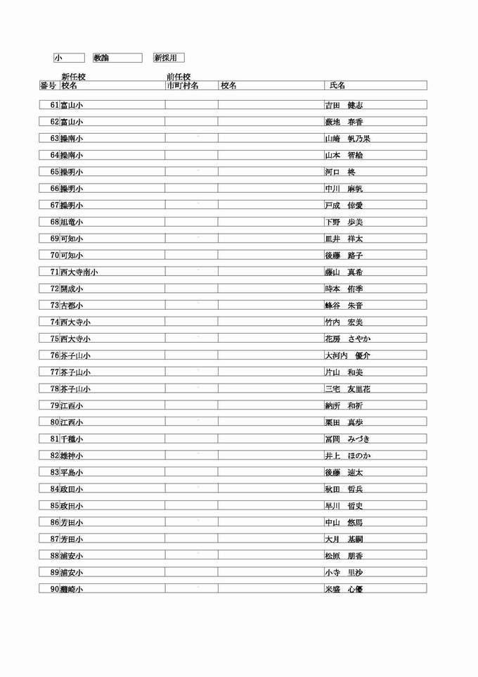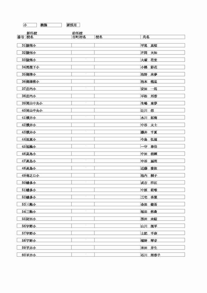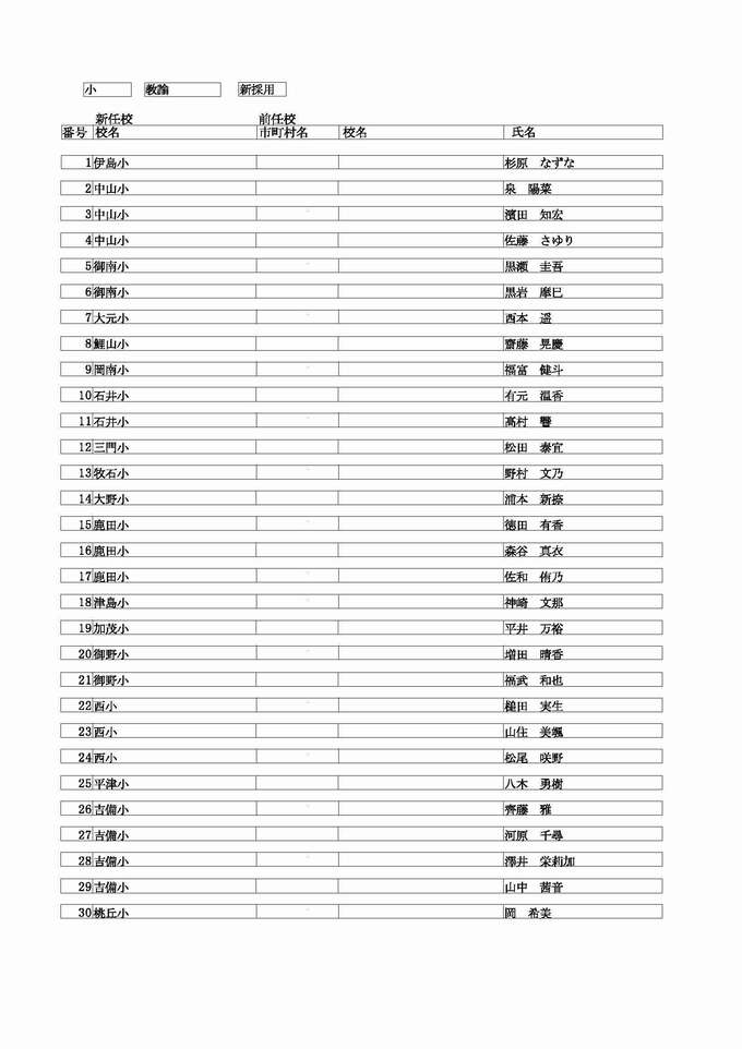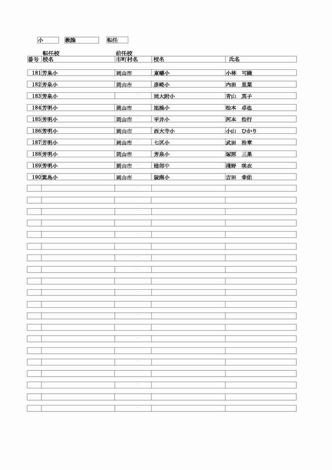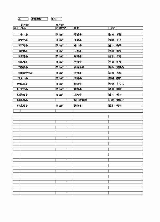 <小学校 教諭 転任>( )内は前任校