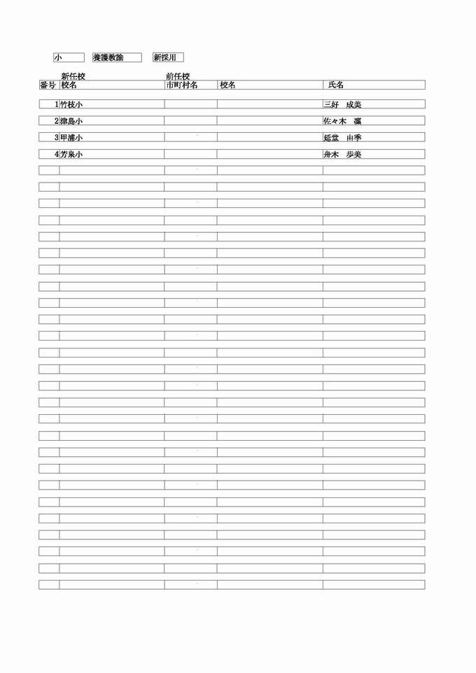 <小学校 養護教諭 転任>( )内は前任校