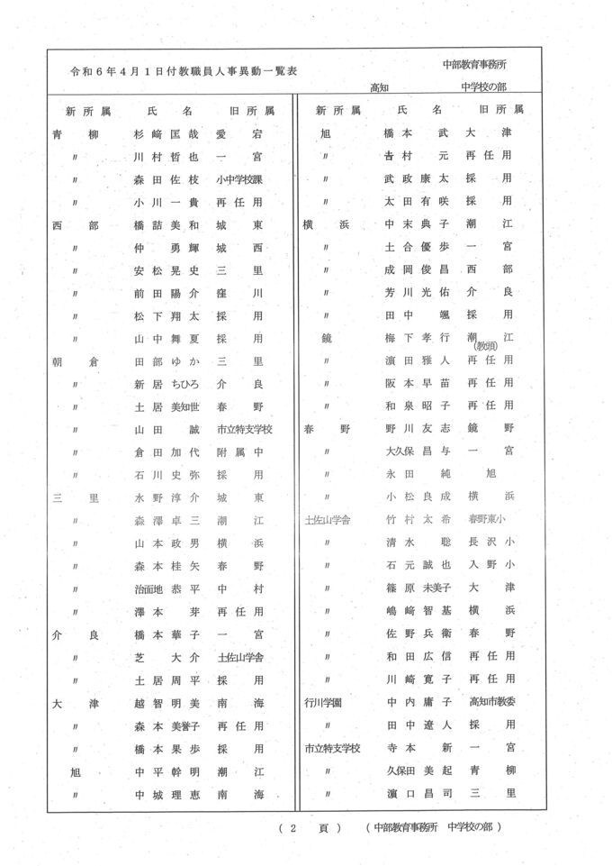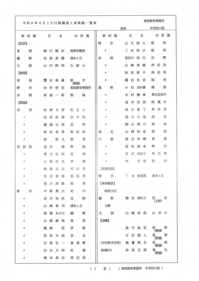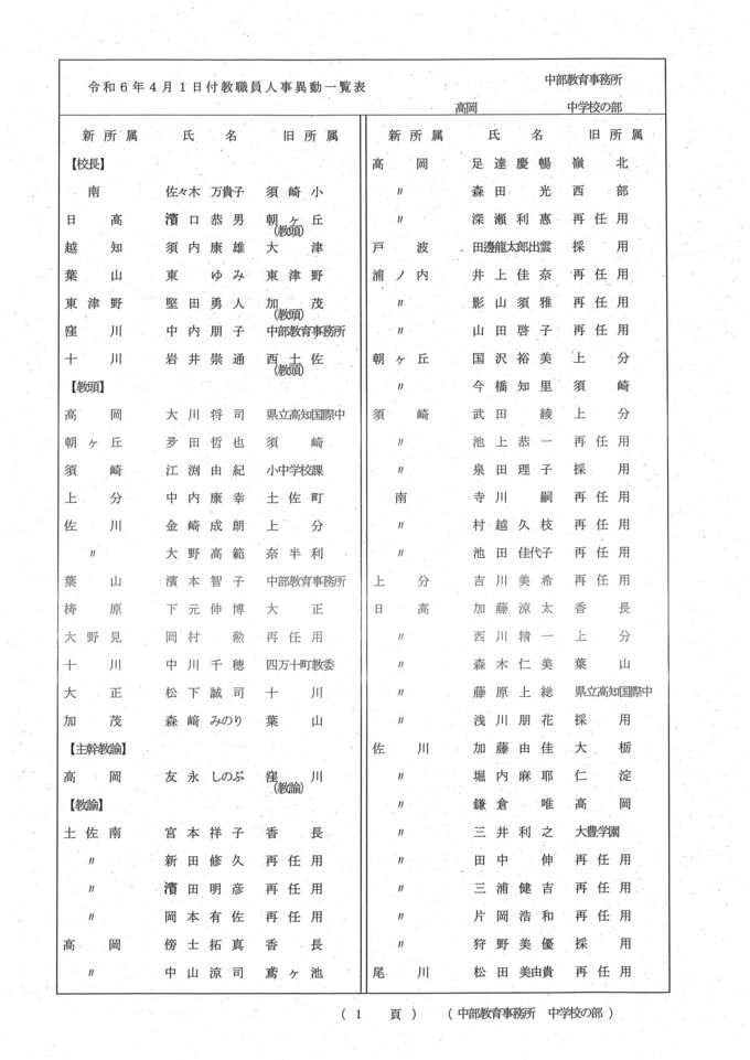 高知県 教職員人事異動情報①「あの先生、どこ行くがやろ?」(小学校・中学校・義務教育学校)