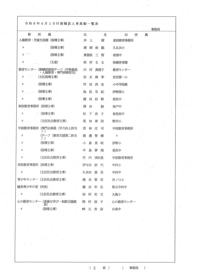 高知県 教職員人事異動情報①「あの先生、どこ行くがやろ?」(小学校・中学校・義務教育学校)